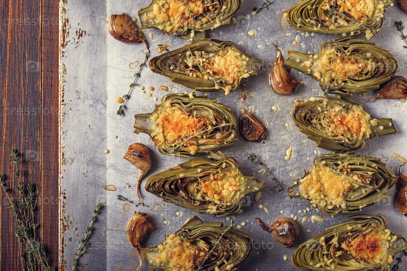 Артишоки, запеченные с сыром, чесноком и тимьяном