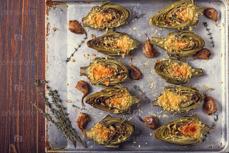 Артишоки, запеченные с сыром, чесноком и тимьяном