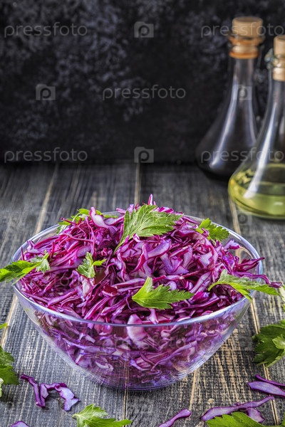 Домашний салат из капусты в миске на темном деревянном фоне