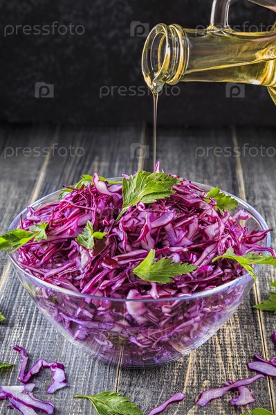 Домашний салат из капусты в миске на темном деревянном фоне