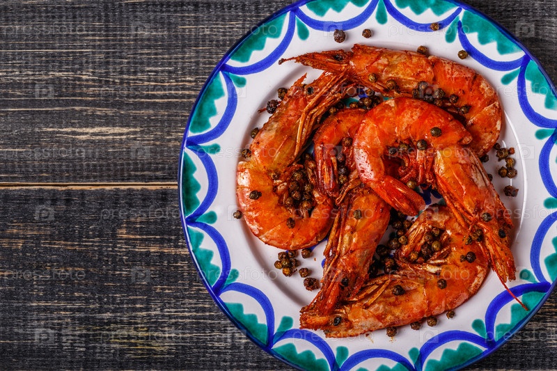 Креветки на гриле с зеленым перцем