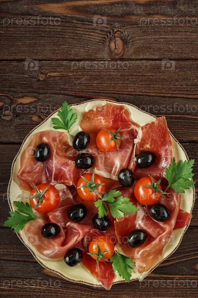 Тарелка с закусками - прошутто, хамон, ветчина