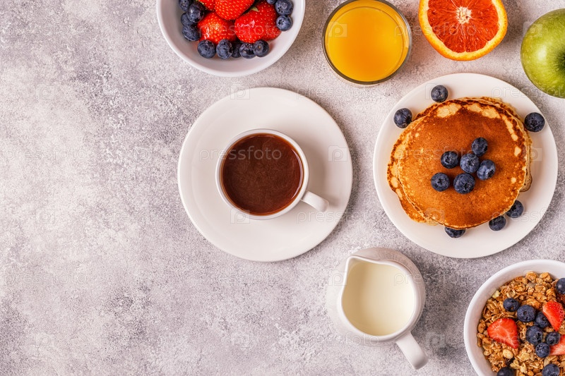 Вкусный завтрак на светлом столе