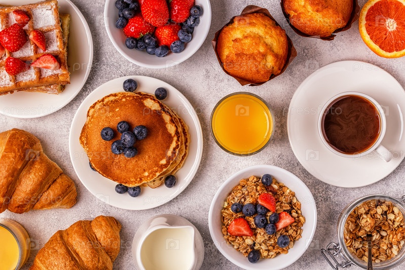 Вкусный завтрак на светлом столе