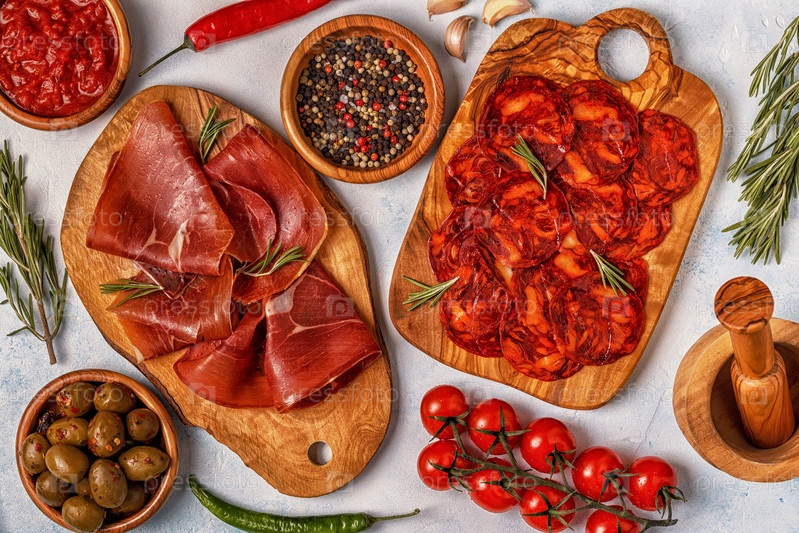 Испанские тапас с чоризо, хамоном, стол для пикника