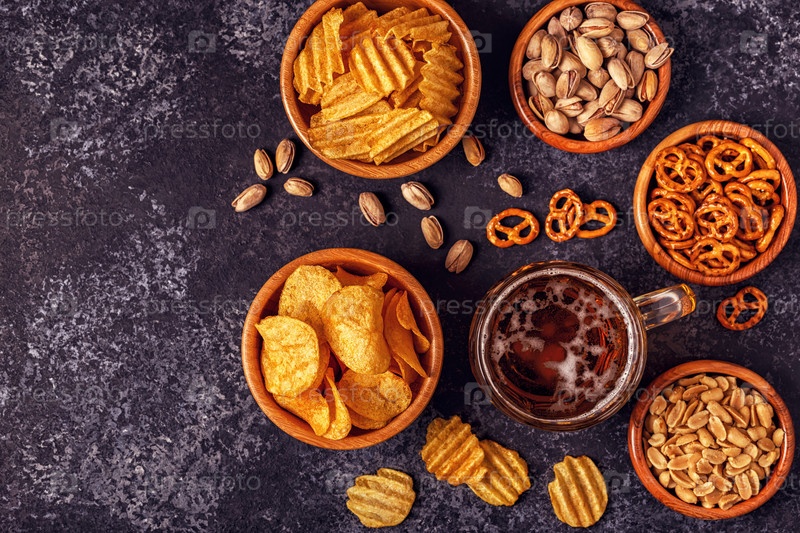 Пиво с закусками на каменном фоне