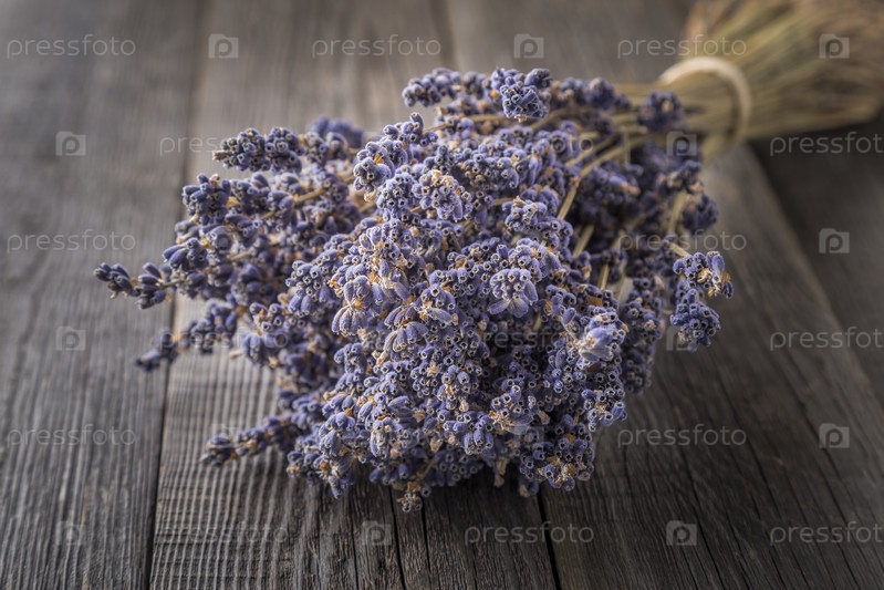 Пучок сушеной лаванды на темном деревянном столе