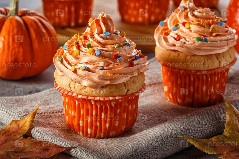 Тыквенные кексы с блестящей сахарной посыпкой