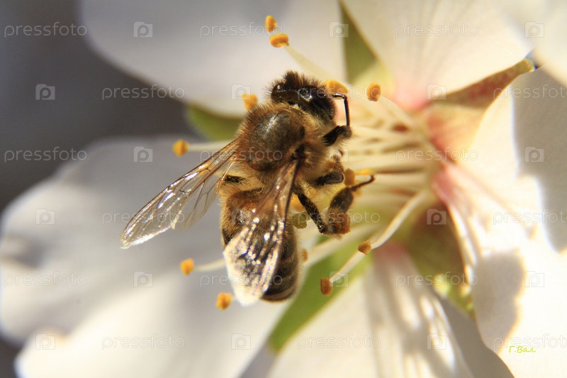 Пчела на цветке миндаля