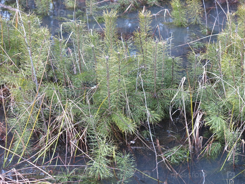 Маленькие ростки елей прорастают весной в затопленном болоте