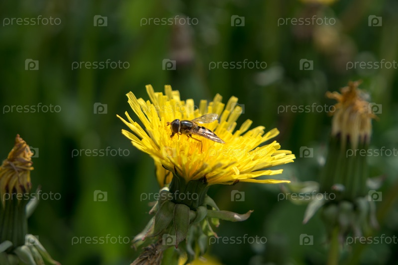 Журчалка собирает нектар на одуванчике