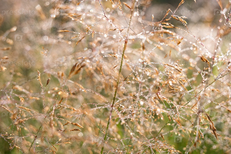 Мятлик или мятлик в утренней росе на лугу. Выборочный фокус. Красивое боке на абстрактном фоне поля