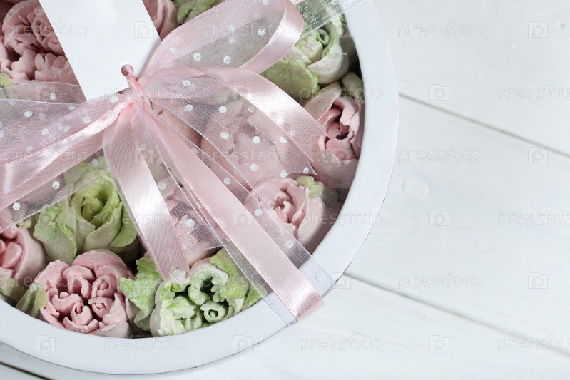 Домашний зефир в картонной коробке. Зефир цветы. Коробка с прозрачной крышкой. Подарочная упаковка. Перевязан лентой