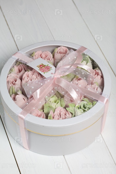 Домашний зефир в картонной коробке. Зефир цветы. Коробка с прозрачной крышкой. Подарочная упаковка. Перевязан лентой