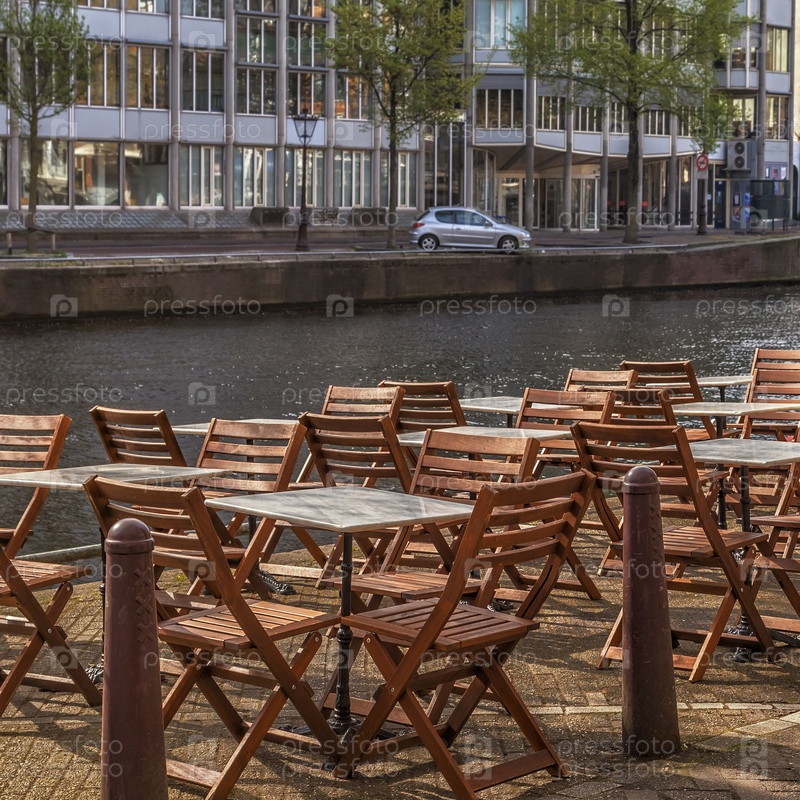 Вид на пустое уличное кафе