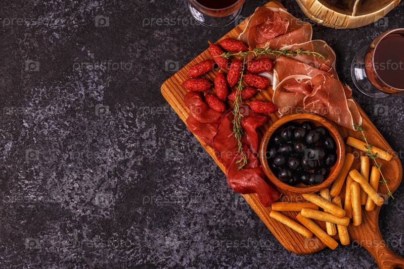 Сосиски, оливки, прошутто, хлебные палочки