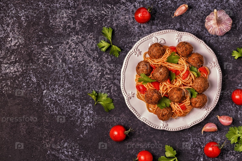 Жареные фрикадельки со спагетти
