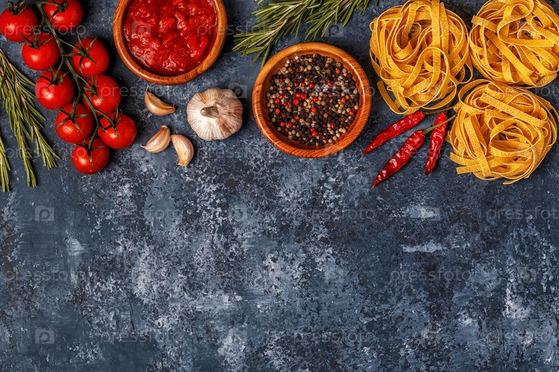 Фон итальянской кухни с макаронами, специями и овощами