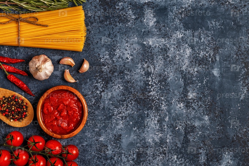 Фон итальянской кухни с макаронами, специями и овощами