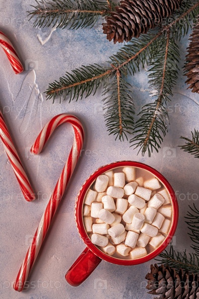 Рождественский фон с горячим какао и зефиром