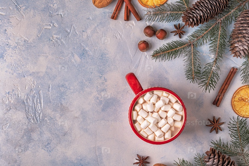 Рождественский фон с горячим какао и зефиром