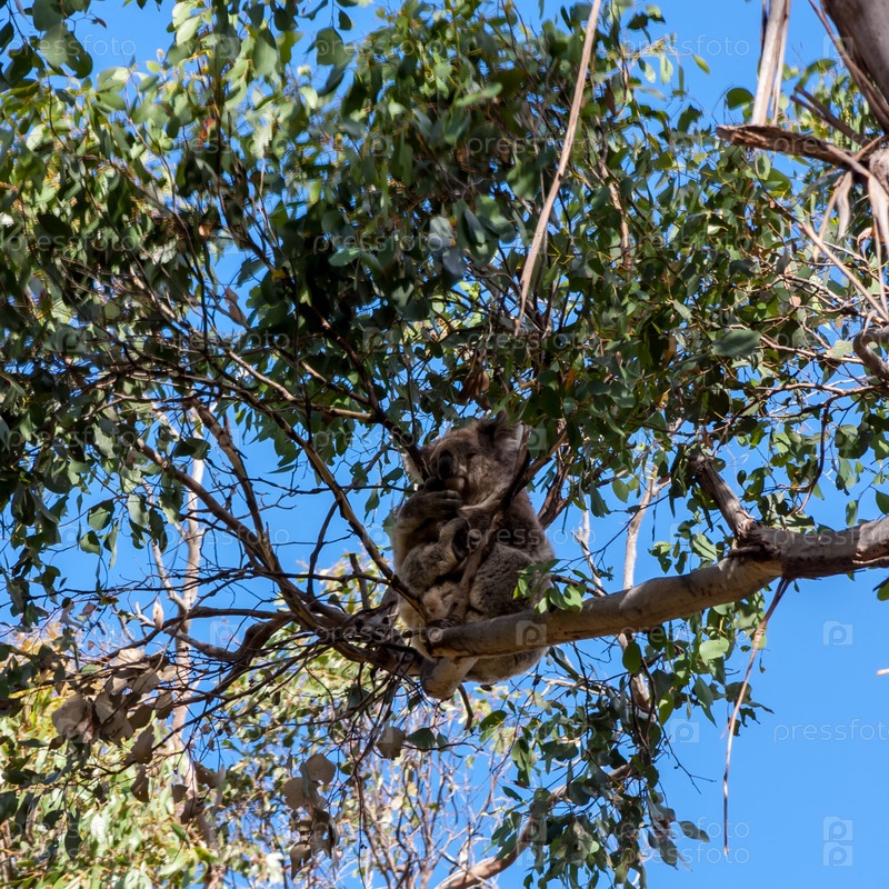 Коала прячется высоко на эвкалипте. Австралия, остров Кенгуру