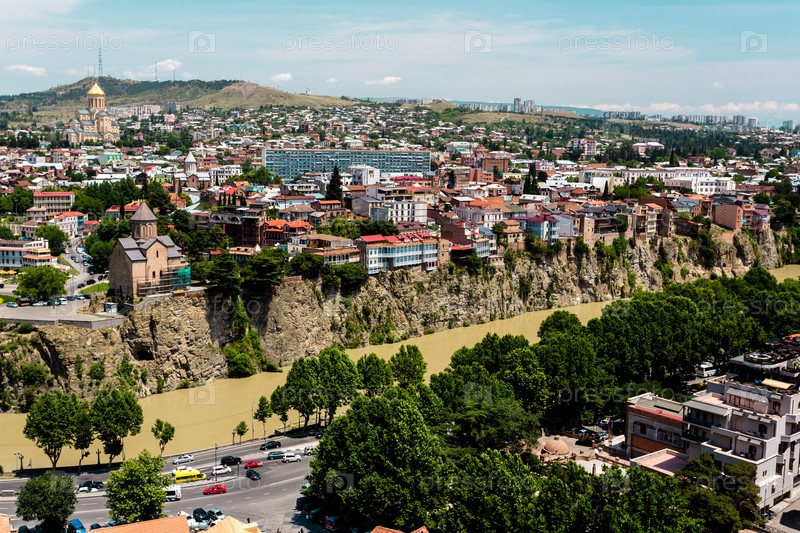 Старый Тбилиси, дома Авлабарского района на скалистом берегу Куры. Тбилиси, Грузия