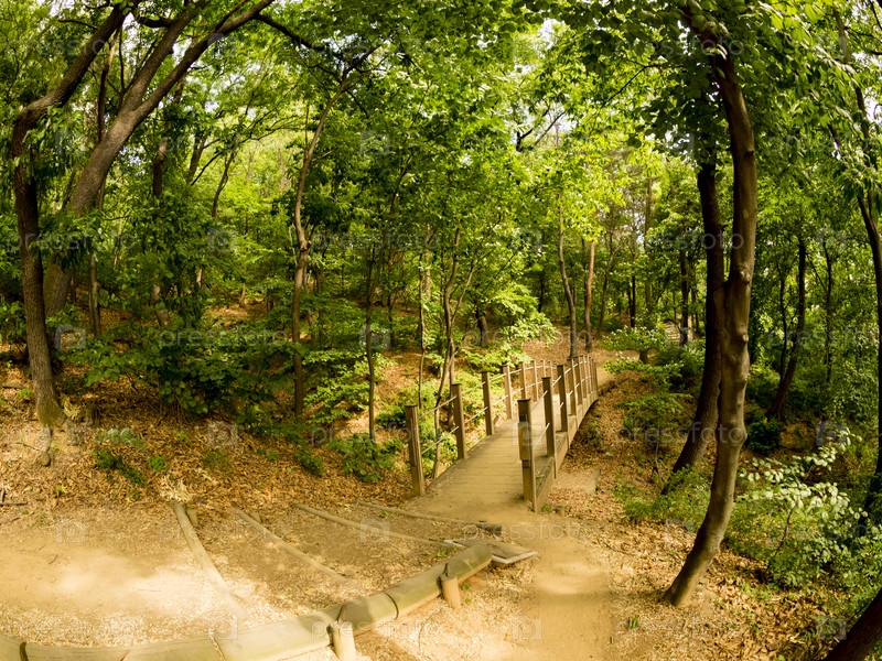 Тропинка через таинственный лес. Изображение рыбьего глаза