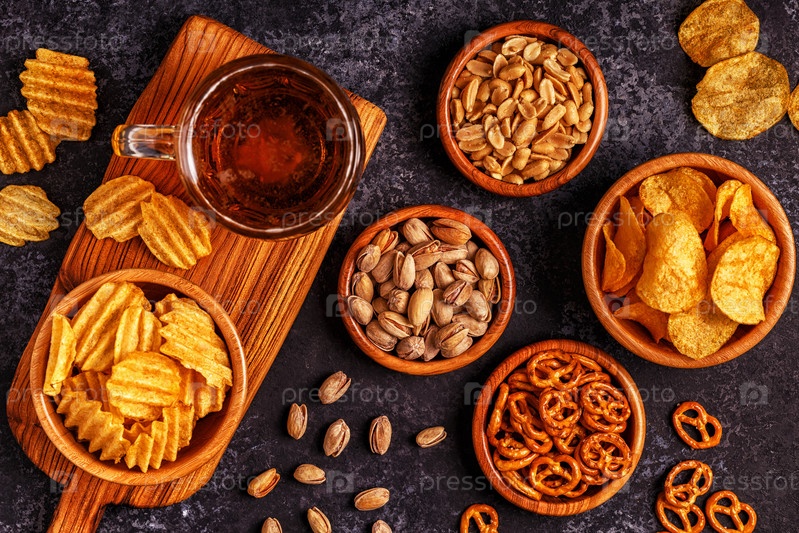 Пиво с закусками на каменном фоне