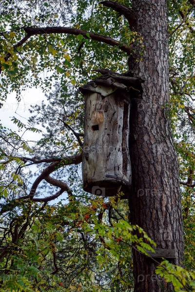 Улей из бревна висит на дереве