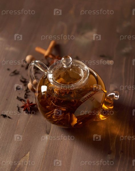 Стеклянный чайник с чаем