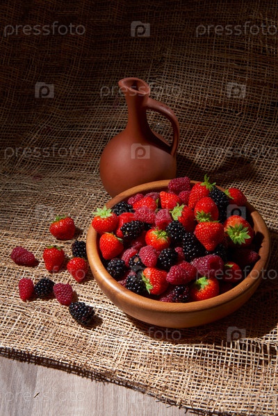 Спелая ежевика, малина и клубника