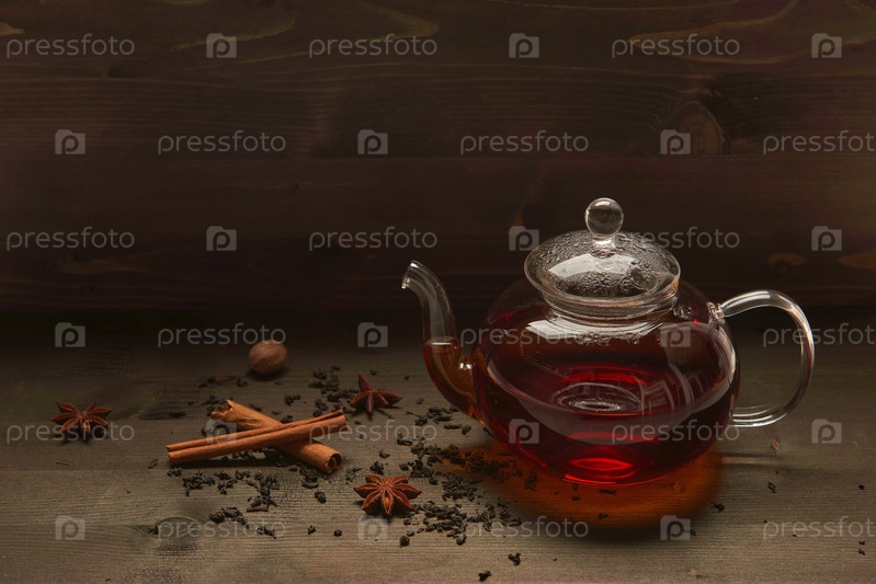 Стеклянный чайник с чаем