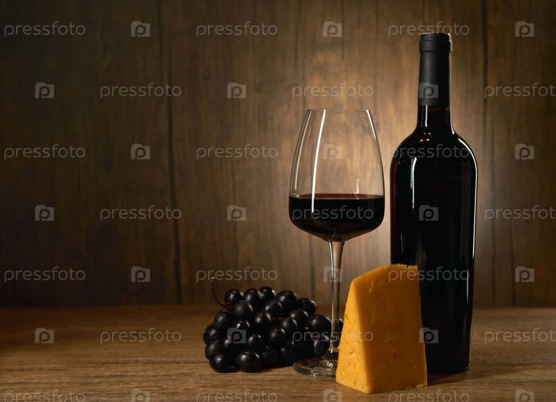 Красное вино, виноград и сыр