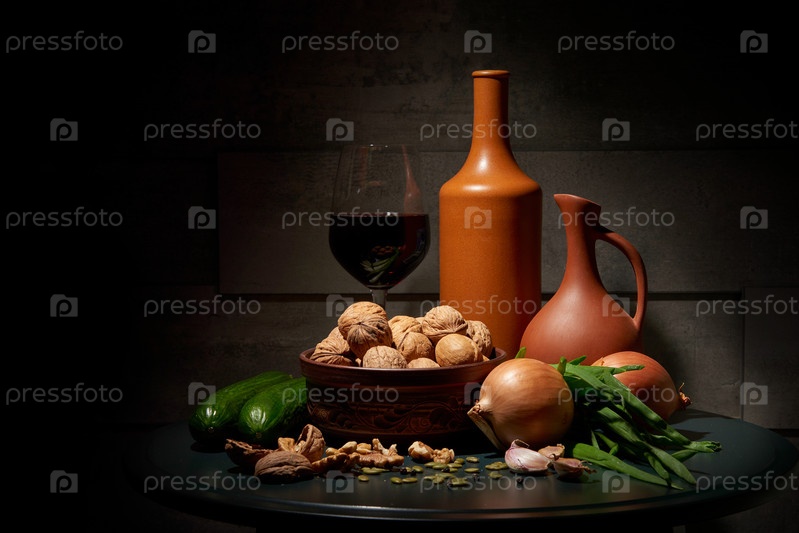 Натюрморт с вином и овощами