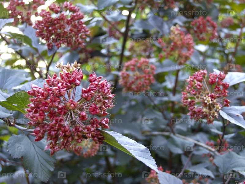 Калинолистный пузырек (Physocarpus opulifolius, Spiraea opulifolius) осенью дает красные семена