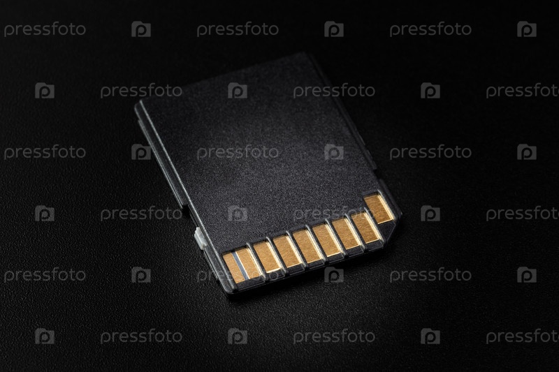 SD-карта в крупном плане на черном фоне с избирательным освещением