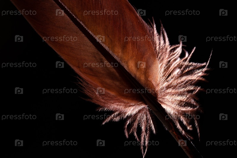 Коричневое перо на темном фоне с подсветкой