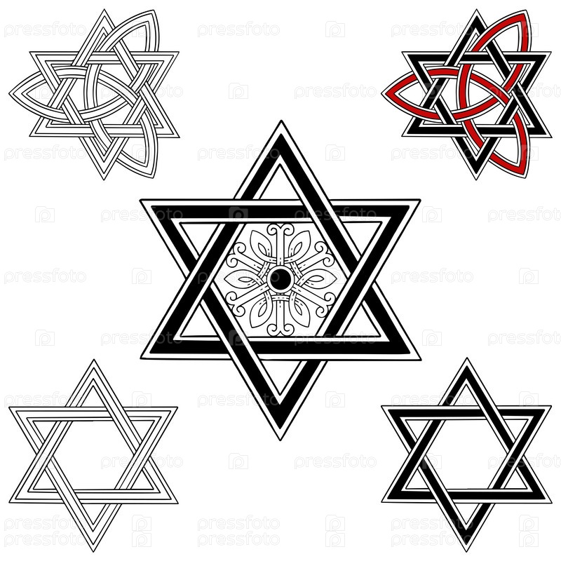Звезда Давида в разных стилях. Шестиконечная звезда. Религиозный знак