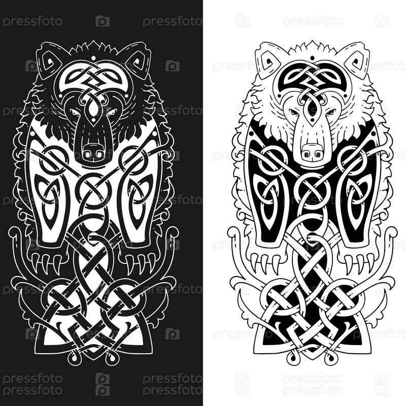 Медведь гризли в кельтском стиле. Эскиз для татуировки