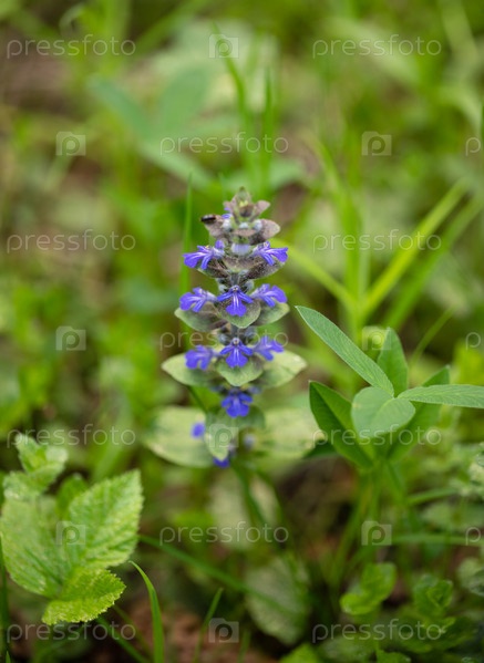 Голубой цветок ajuga reptans или рожок или жук на зеленой лужайке. Кейтлинс гигант на лугу. Весенний цвет