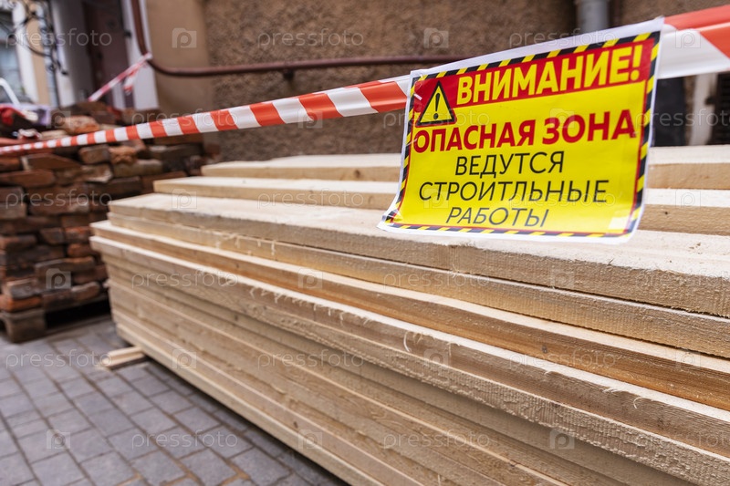 Россия. Санкт-Петербург. Предупреждение об опасной зоне на участке работ. Россия. Санкт-Петербург. Предупреждение о опасной зоне на месте работы