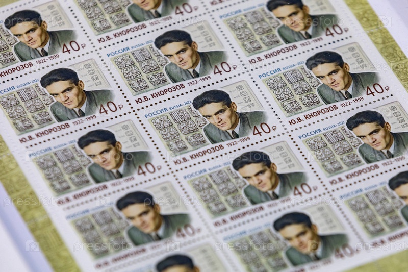 Россия.Сочи.Невыпущенные почтовые марки с изображением ученого Юрия Кнорозова.Россия.Сочи.Почтовые марки быстрого выпуска с изображением учёного Юрия Кнорозова