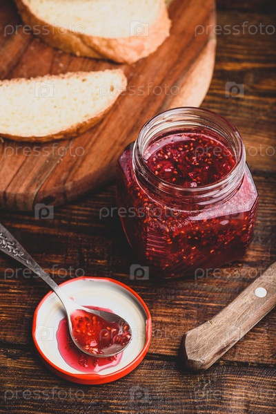 Банка домашнего малинового варенья