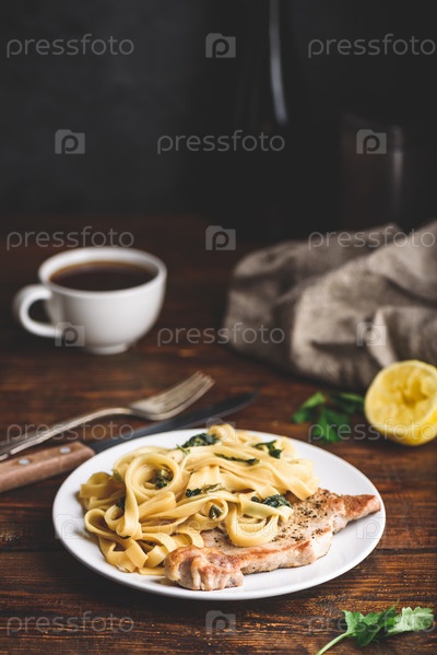 Стейк из свиной отбивной с тальятелле и каперсами