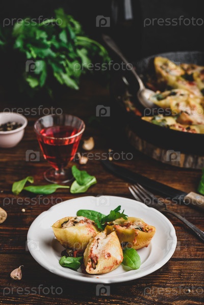 Паста с начинкой из говяжьего фарша, шпината и сыра