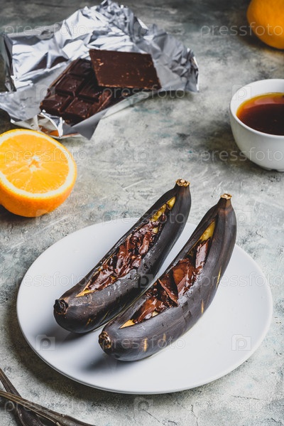 Бананы на гриле с темным шоколадом