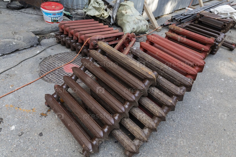 Россия. Санкт-Петербург. Капитальный ремонт систем теплоснабжения жилого дома. Батареи отопления. Россия. Санкт-Петербург. Основные ремонты систем теплоснабжения жилого здания. Нагревательные батарейки