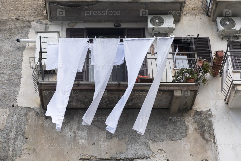 Италия. Казерта. Вымытое белье высушивается на балконе. Италия. Caserta. The laundry is dried on the balcony