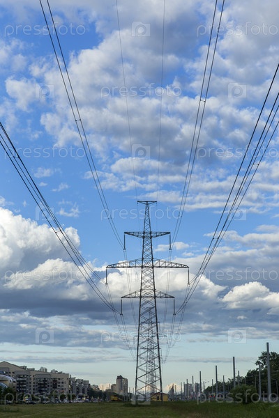 Россия, Санкт-Петербург. Облачное небо. Линии электропередач. ЛЭП. Россия, Санкт-Петербург. Облачное небо. Электрические линии